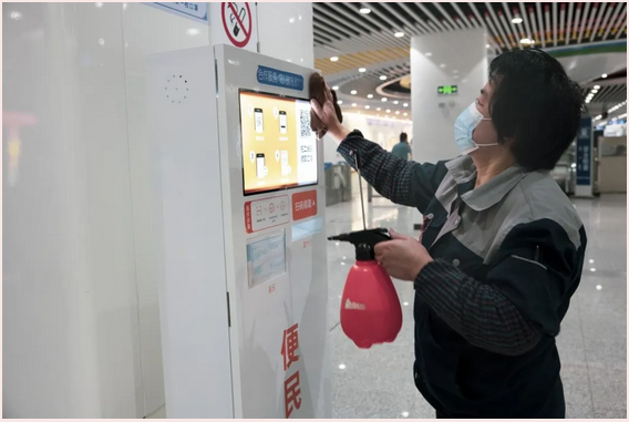 做好车站卫生基础工作,对全线各站出入口、飞顶、卫生间部位进行集中清理,对乘客座椅、自助售票机等乘客使用频率较高的设备设施,每日不少于5次消杀工作;积极落实车站垃圾分类工作,保洁人员每日对全线276组四分类垃圾桶进行二次分拣,做实做细垃圾分类工作,通过开展垃圾分类线下主题活动,拉近地铁与市民的距离,让“绿色、低碳、环保”的理念更加深入人心。