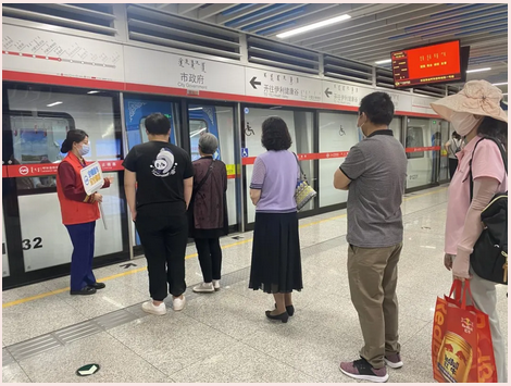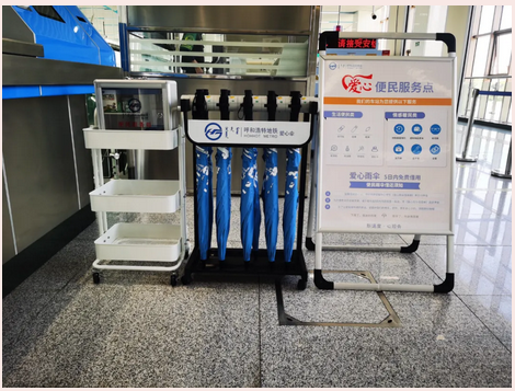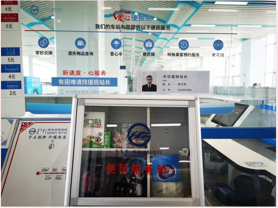 2021年是呼和浩特地铁“安全服务提升年”,交通集团公司党委以打造人民满意的轨道交通为宗旨,聚焦确保轨道交通安全运营优质服务主责主业,通过在地铁1、2号线全线44个车站设立便民服务点、开展“开门纳谏”、“站区长接待日”等活动为抓手,与文明城市创建和营商环境优化提升工作相融合、互促进,在打造地铁文明的同时,引导乘客树立“共创、共建文明城市”新风尚,为呼和浩特创建全国文明城市贡献轨道交通力量。在线网44座车站设立“爱心便民服务点”。5月底,在44个地铁车站内设置完成爱心便民服务点,每个便民服务点均配备便民服务箱(配备创口贴、湿纸巾、针线包等物品)、提供雨伞5日内免费借用,并开通“无障碍接续服务”,提供“特殊乘客”预约、提高特殊重点乘客乘车体验,满足乘客多样化出行需求。设置爱心便民服务点以来,共计发放爱心雨伞471把,创口贴、湿巾纸220余件,惠及乘客近700余人次。