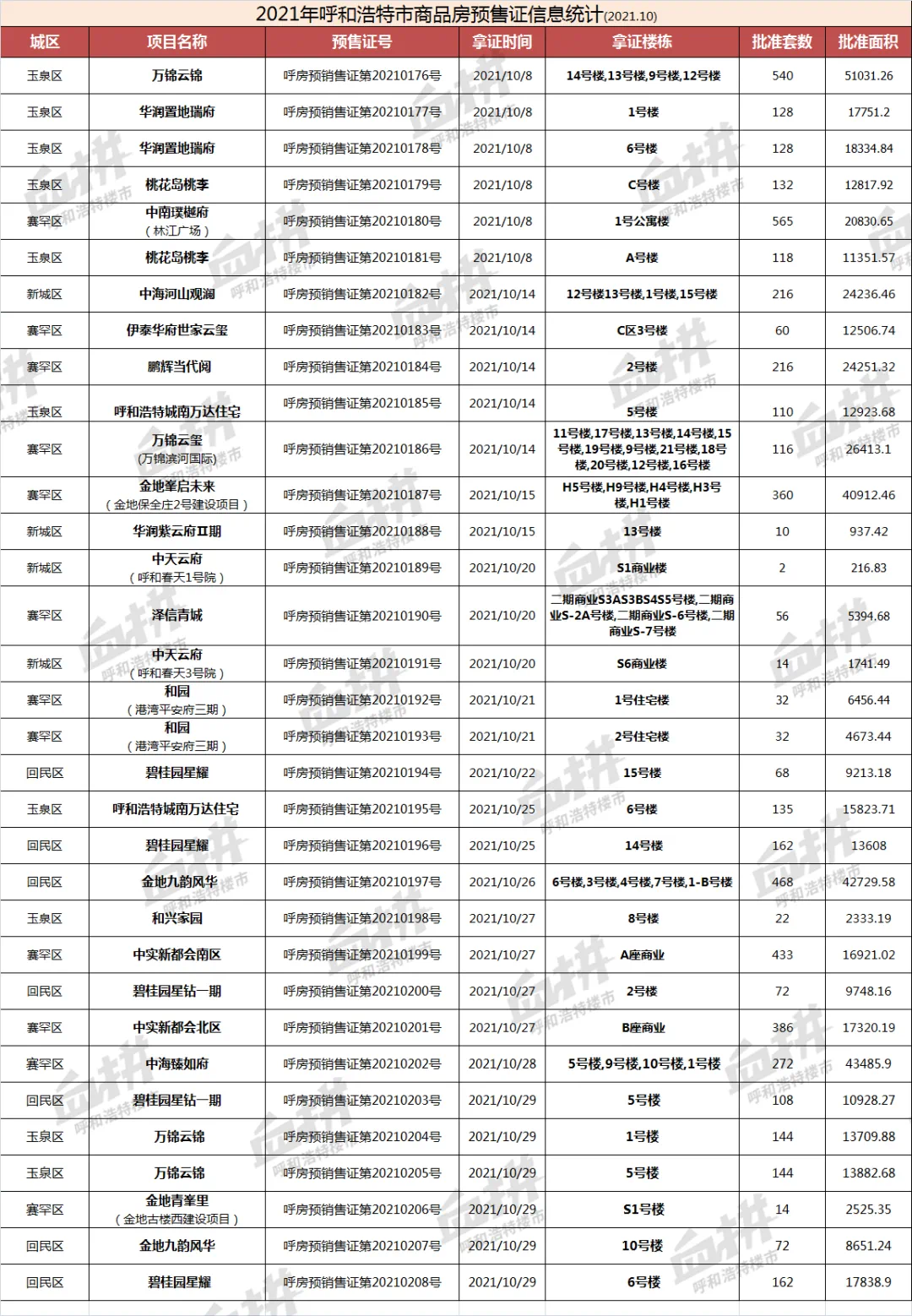 10月呼市5500套房预售,赛罕高端盘内卷,玉泉压力分散