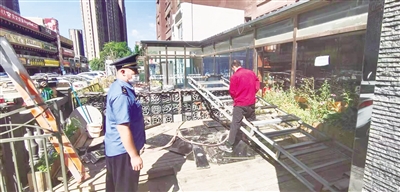 呼和浩特新闻网8月27日讯 据《呼和浩特晚报》报道(记者 王英)8月6日,呼和浩特晚报《青城眼》专刊刊发了《沿街商户私搭乱建 执法拆除“零容忍”》的消息,对赛罕区绿地公馆1号小区外沿街商户私搭乱建,赛罕区城市管理综合执法局党政新区中队下达《催告通知书》要求商户15日内自行拆除的事情进行了报道。8月23日,记者再次来到赛罕区绿地公馆1号小区,看到商户已经开始拆除违建,个别商户已拆除完毕。