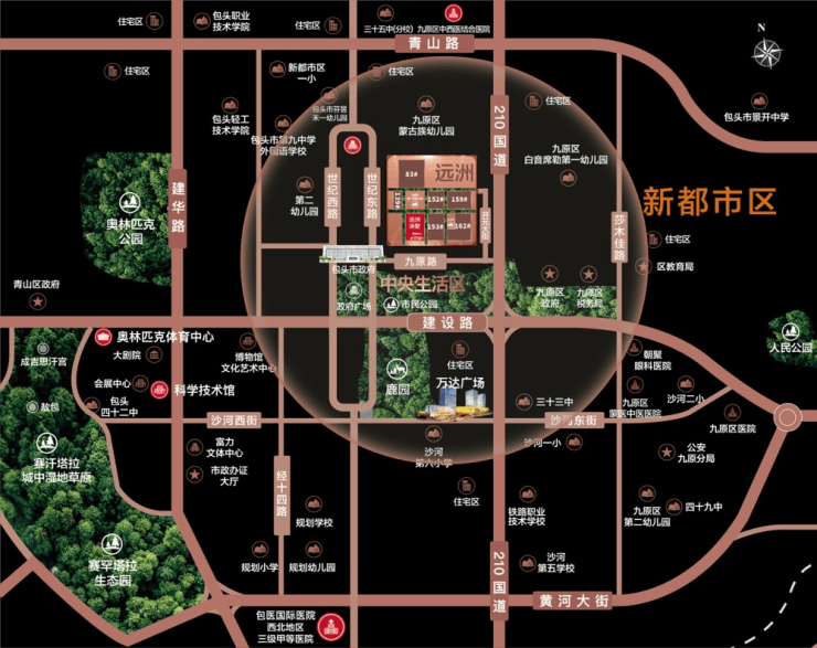 项目雄踞新都市区核心腹地,与市政府仅咫尺之遥。作为包头重点发展区域,新都市区汇聚行政中心、金融商务、文化体育等优质资源,未来发展潜力不可限量。