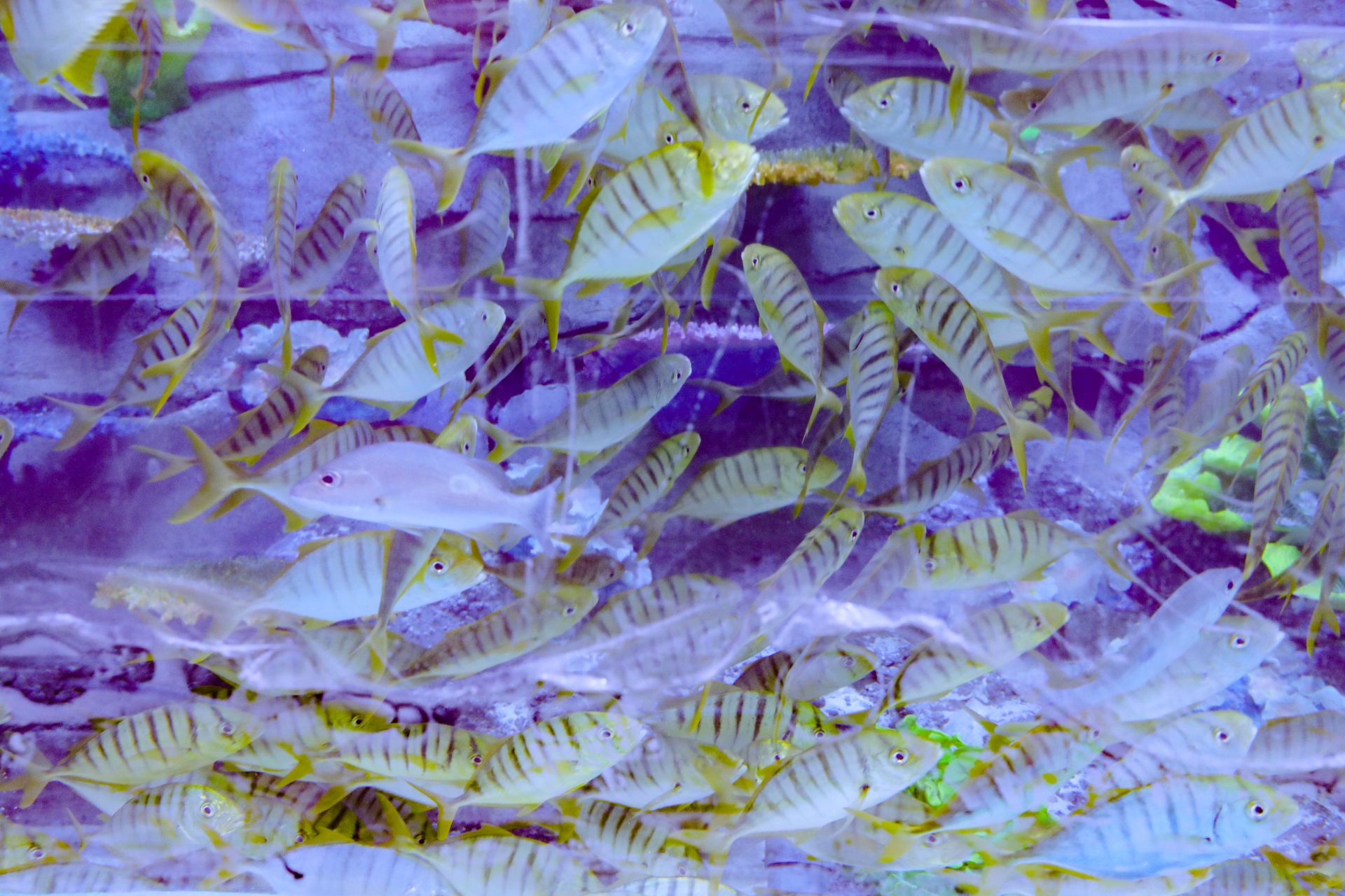 而最值得带小朋友来打卡地当属海洋休闲区域,在海底隧道场景中,白鳍鲨、魔鬼鱼等等珍奇的海洋生物与成群结队的鱼群畅游其中,十分有趣。如果你足够幸运,还能看到工作人员潜入水中和鱼群互动、投食的场景,那深邃的水域在灯光的映射下显得更加迷人。