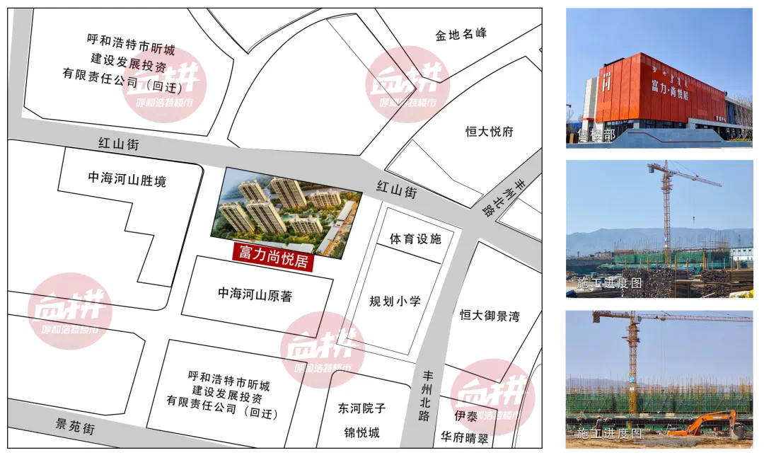 项目地处北二环红山街以南,占地48086.39㎡,共规划6栋住宅楼(1-6#),规划户数736户,户型为110、128、145㎡,当前展厅已开放,售楼部装修中。富力尚悦居也是毫沁营板块较先入市的。