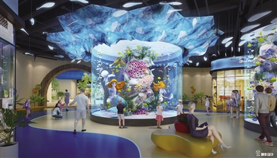 海洋世界街区是建设单位首次将海洋实体场景融入地铁网红街,通过海洋隧道、海洋天幕、美人鱼表演、水母缸、互动触摸池等多个场景,以及各式各样的海洋生物,让人们可以零距离体验蓝色海洋的魅力,届时该街区也将完全免费向公众开放,希望能将科普、环保、爱护地球等正能量传递给每一位市民朋友。