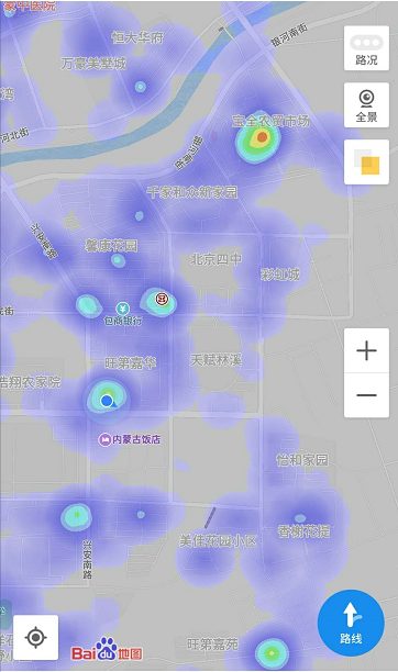 本文数据采用百度地图热力图,热力图是利用获取的手机基站定位该区域的用户数量,通过用户数量渲染地图颜色。