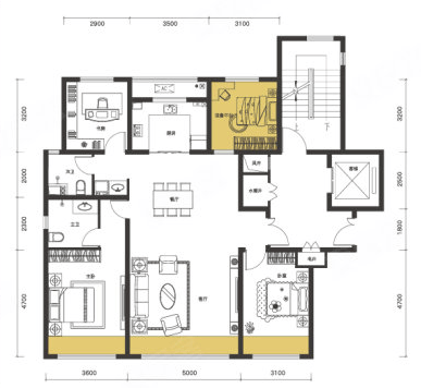 129㎡ 客厅开间5米