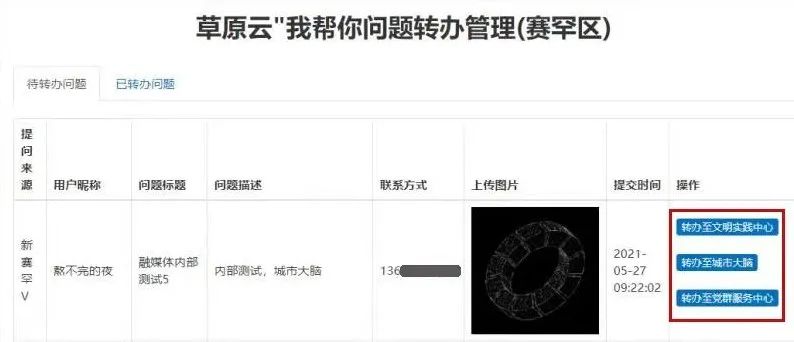 “四个中心”联合,如何在“云端”实现一体化调度?赛罕区融媒体中心集合了四中心平台技术人员,在全自治区率先将各自运行平台进行一体化技术贯通。平台贯通之后,群众留言将通过“草原云”客户端直接被传送至后台编辑端,由融媒体中心编辑实时在线审核,根据问题类别进行分析研判,收集到的群众诉求由融媒体中心按照“行政服务类、志愿服务类、党建服务类、其他服务类”等分类事项,分别转办至新时代文明实践中心、接诉即办指挥调度中心或党群服务中心,最终实现“群众点单、融媒体下单、‘三中心’买单、群众评单”的综合性为民服务模式。