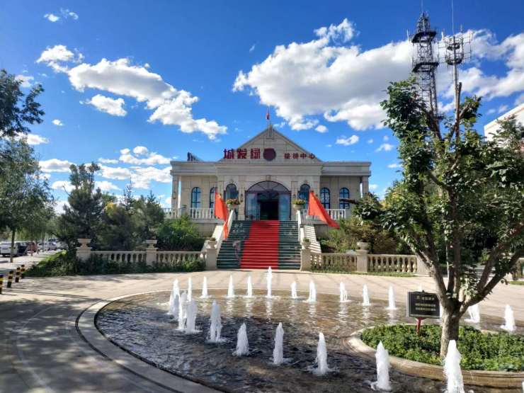 7月24日天朗气清,位于回民区海拉尔西街与工农兵路交汇处西北角的城发绿园,售楼部门口绿树葱茏,景观喷泉带来丝丝夏日清凉。沿项目西侧的乌里沙河北上200米,就来到了城发绿园社区内。