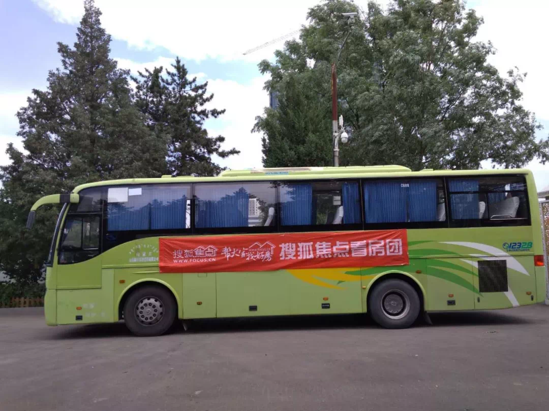 6月23日,天气晴朗,搜狐焦点看房团网友陆续赶到展览馆北门集合,下午1:30看房大巴准时出发。