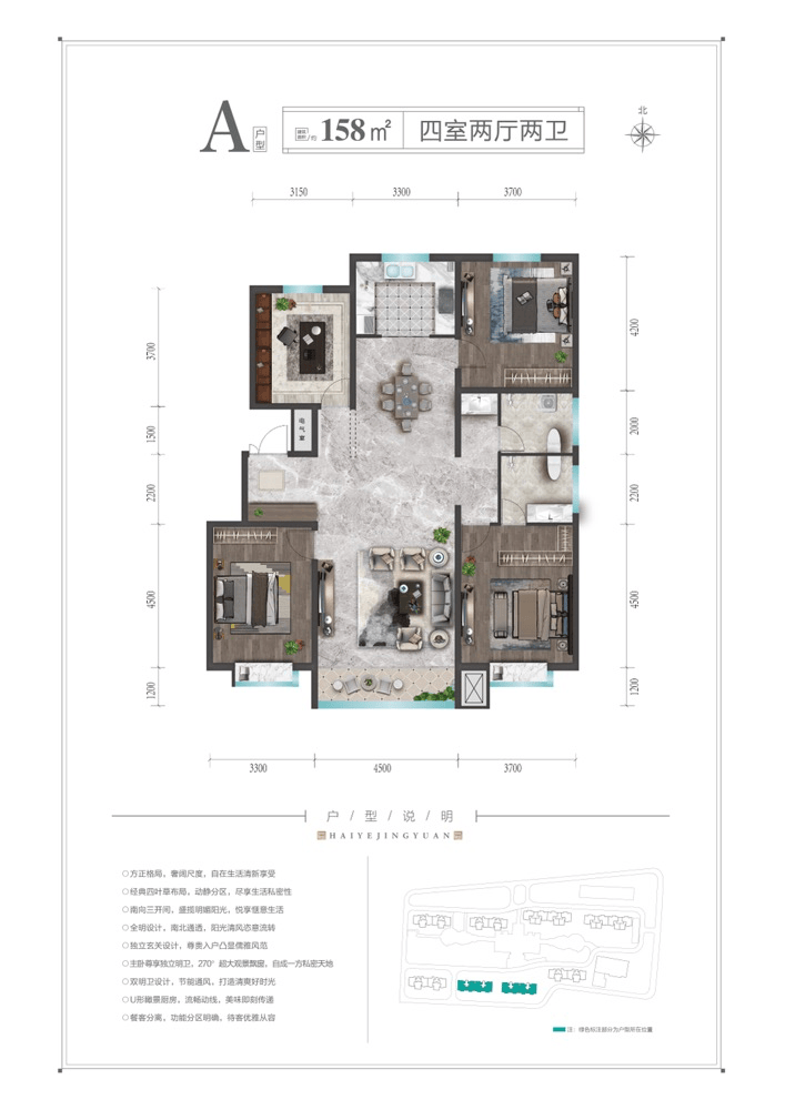 A 户型(洋房) 建筑面积 :158㎡ 四室两厅两卫