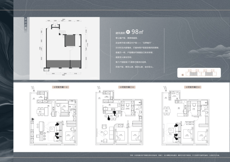 万锦山河映月推出零公摊与自由成长户型,彻底打破传统户型固定隔间的束缚,真正赋予业主自主设计的权利。您的家就如同乐高积木一般,可依据您的主观意识随心“DIY”。整体户型设计为大开间、大进深,不仅拥有更充裕的储物空间,动线设计也更为优化,通风路径得以加长,极大地提升了居住体验。该户型具备强大的功能,能合理分区、高效收纳,动线巧妙且隐私性强,堪称功能主义户型的佼佼者。