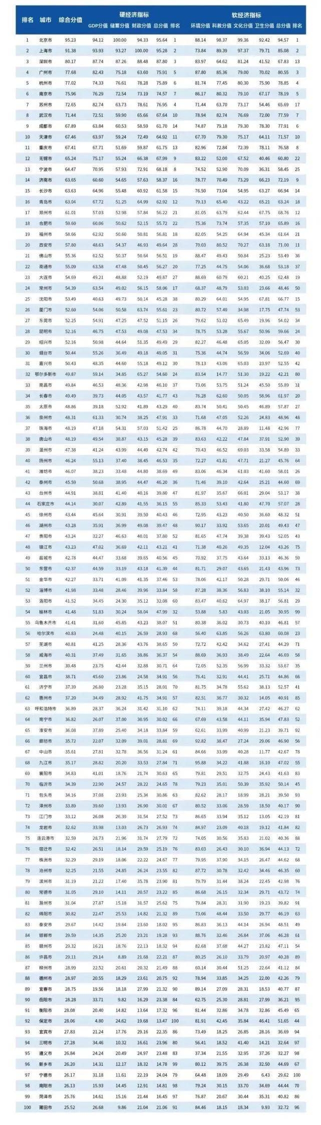 根据华顿研究院较新发布数据, 2022年中国百强城市排行榜公布,北京、上海、深圳分列前三位;