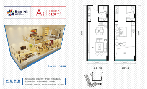 富恒·东mall中心LOFT公寓,层高达5.45米,买一层享两层,多出一层精彩。