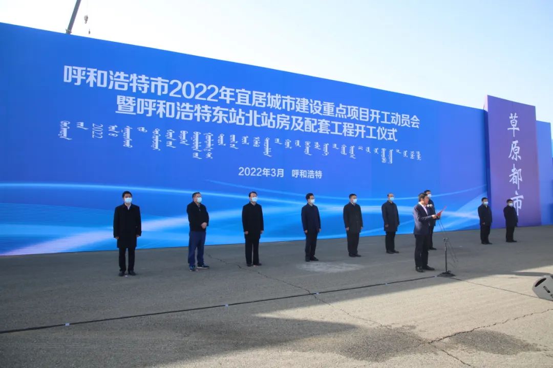 3月26日,呼和浩特市2022年宜居城市建设重点项目开工动员会在呼和浩特火车东站北广场隆重举行,自治区党委常委、市委书记包钢宣布集中开工,市委副书记、市长贺海东致辞。自治区住建厅厅长冯任飞,市人大常委会主任常培忠,市政协主席李炯出席动员会。动员会现场,举行了呼和浩特东站北站房及配套工程奠基仪式,与会领导为工程项目开工培土奠基。