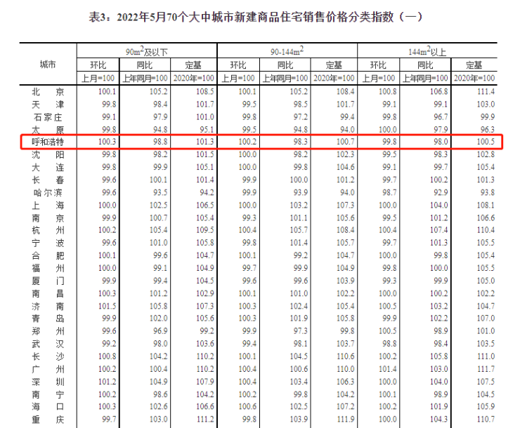 面积段来看,5月呼市90㎡及以下新建商品住宅销售价格指数回升,环比上涨0.3%,同比下降1.2%;
