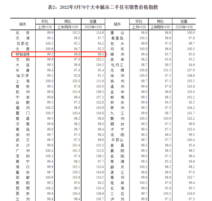二手房价格继续走低,根据数据显示,5月呼市二手房房价指数环比下降0.5%,同比下降3.4%,相对2020年基准,下跌3.7%,再创新低。