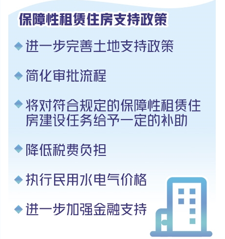 倪虹介绍,《意见》提出的六个方面的支持政策力度大、措施实、含金量高。一是进一步完善土地支持政策。二是简化审批流程。三是中央将对符合规定的保障性租赁住房建设任务给予一定的补助。四是降低税费负担。五是执行民用水电气价格。六是进一步加强金融支持。