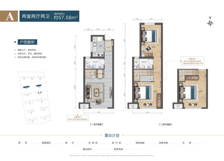 【倾馨A】 57.58㎡ 两室两厅两卫