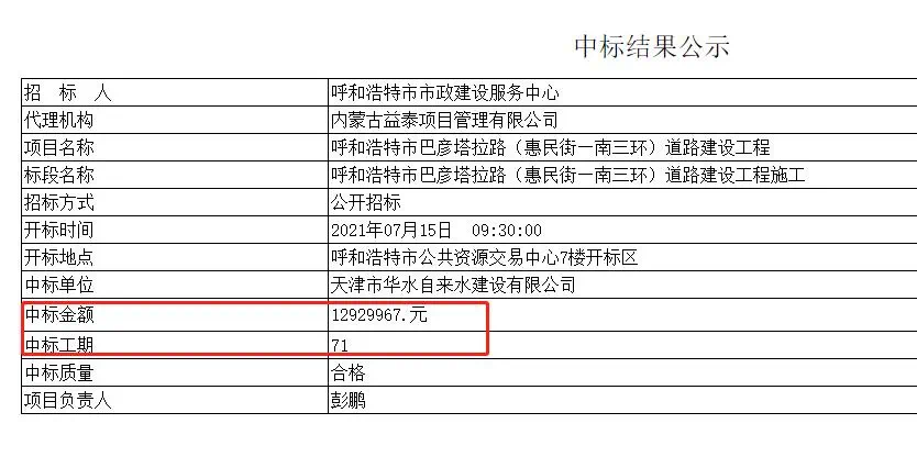 保全庄板块主干道巴彦塔拉路(即东二环延长线),惠民街-南三环段道路建设施工,在7月15日完成招标,预计投资超过1292万元,中标建设工期71天。