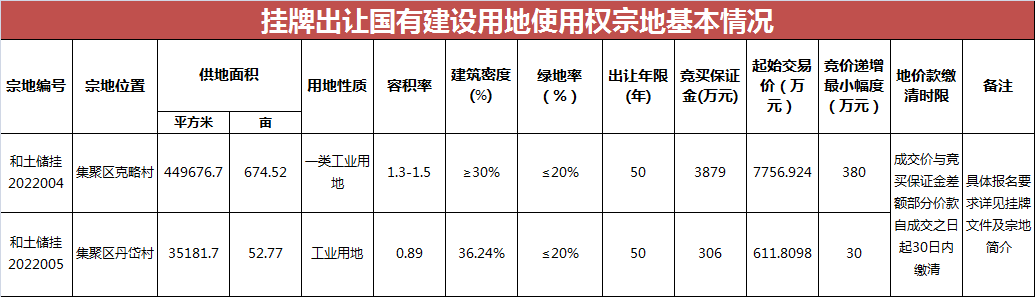 根据呼和浩特公共资源交易中心消息,呼和浩特和林格尔县出让2宗工业用地,合计共727.29亩,起始交易价8368.7334万元,这2块地将在2022年4月22日摘牌。