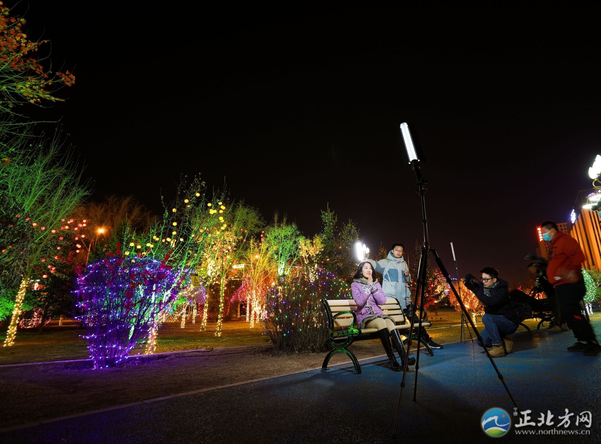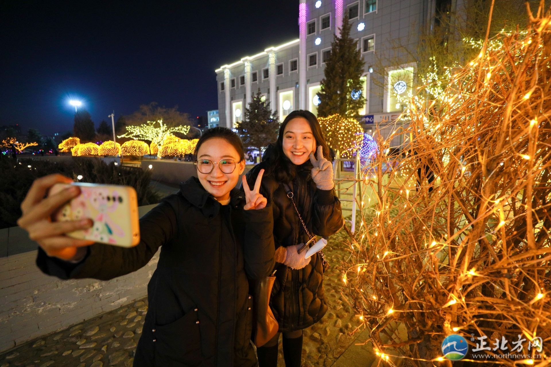 1月5日19时,玉泉区大南街华灯初上,流光溢彩,市民走在街头就感受到节日来临的喜庆气氛,整条街树上挂满了彩灯,各色灯光规律地变化着、闪烁着。走在呼和浩特的大街小巷,就能看到道路两边的灯杆和树体上工人们正在忙碌地悬挂红灯笼,造型各异的中国结和LED串灯也亮相街头,色彩斑斓,使不同的街道呈现出不同艺术特色。在敕勒川大街上也是灯光璀璨,美不胜收。在草原丝绸之路文化主题公园内,美丽迷人的夜景吸引着市民前来拍摄短视频,伴随着彩灯的点亮,公园内变成了一个美轮美奂、火树银花的光影世界。