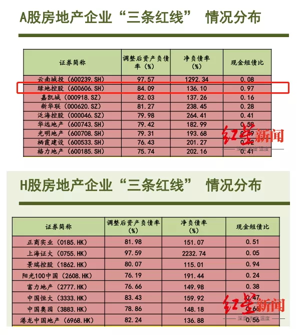 根据房企的“踩线”情况,分为“红、橙、黄、绿”四档,实施差异化债务规模管理。