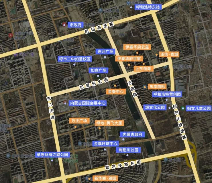 在城市发展纲领的推动下,如意板块走过了高歌猛进的10年,如今成为自治区及呼和浩特改革开放的窗口、高新技术产业化基地及拉动经济增长的重要因素,成为全市环境优、服务质量高、科技含量高、经济效益凸显的新兴园区,是全市具有战略意义的经济区域。700多家企业入驻,两级政府、各银行金融机构总部基地落成,区域内配套有博物院、美术馆、科技馆、国际会展中心,生态方面如意河碧波荡漾,两岸风景如画、有500亩的敕勒川生态湿地公园、如意广场、草原丝绸之路公园、塬文化公园等错落布局…交通方面,四通八达的路网,附近分布着高铁站、地铁站、白塔机场等交通枢纽,让工作生活的半径无限延展。