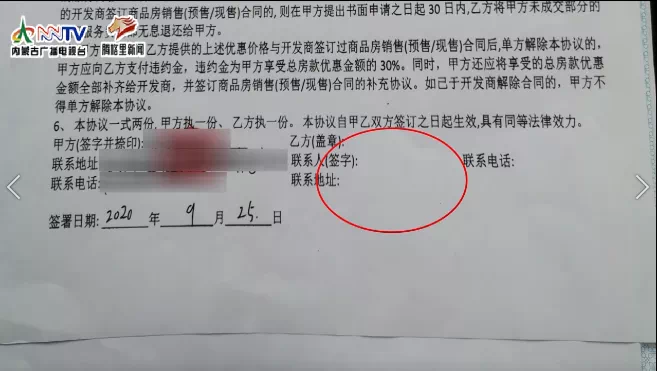 王睿 联合创展房地产经纪有限公司内蒙古分公司法律顾问: 因为当时(售楼部)有可能有一些作废的文件,所以这个纵横万千公司没有进行盖章,而且如果在客户需要的情况下这一份合同是会给客户的。