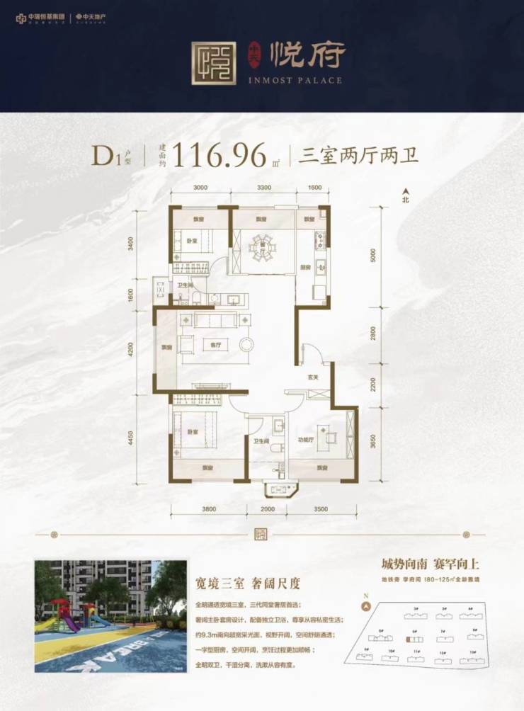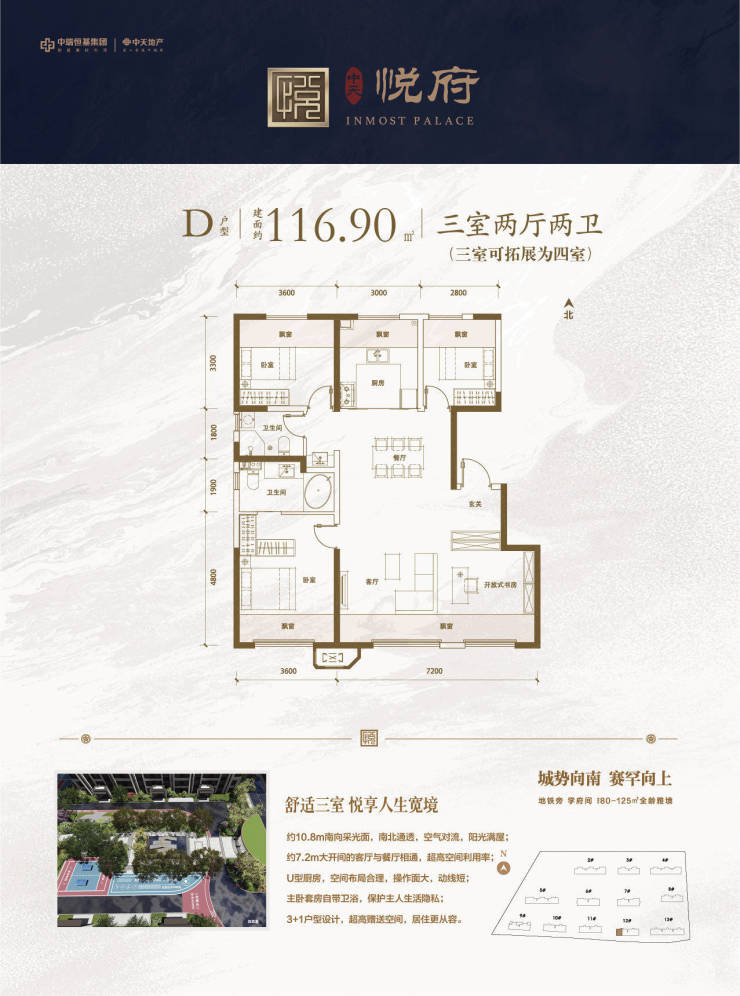116㎡三居(7.2米宽厅,约20㎡赠送)