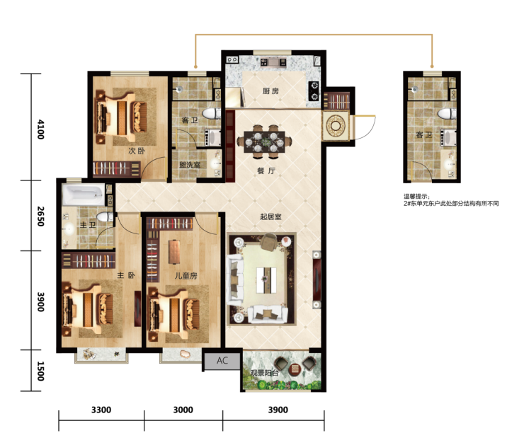 全明采光通透明亮,双卧室向南阳光轻松入室。奢阔阳台、观景飘窗举目尽揽开阔美景,阳光满室,绿意萦怀。套房式主卧舒适大气,配备私人卫浴,衍生更大私人空间,让每次起居都充满仪式感。餐厅、客厅于阔景阳台一线相连,超大双厅,宽阔舒适,彰显生活尺度。