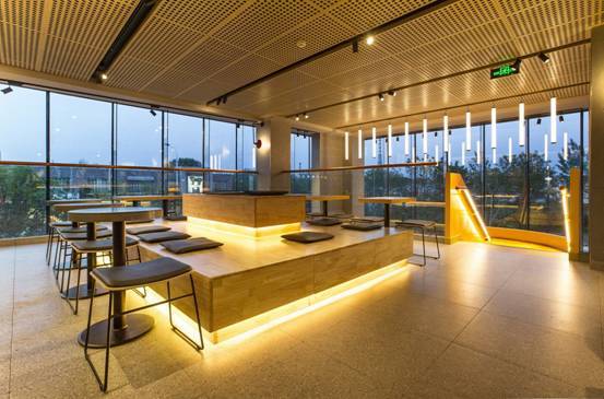 在麦当劳凯德广场·诺和木勒购物中心店内,“阳光黄色”旋转楼梯格外的引人注目,自助点餐、美味特调、送餐到桌、麦当劳App、微信小程序会员积分、移动支付、双点式柜台、电子餐牌,给前来就餐的食客时尚、快捷、舒适的用餐体验,搭配简约、现代及工业风的整体设计风格,虽然还在试营业阶段,但仍不乏前来就餐、打卡的顾客,整合了数字化硬件、个性化产品与人性化服务的麦当劳未来餐厅旗舰店俨然已经成为青城的新地标。