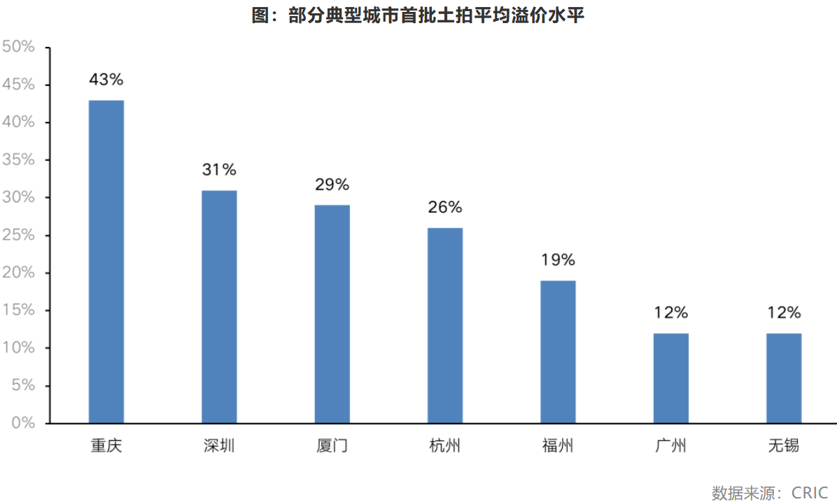自4月中旬长春集中首拍以来,各地首批集中供地逐步进入高峰期,目前22城中已有过半城市完成首批土拍,北京、深圳、杭州、重庆等热点城市,地块竞争尤为激烈,多数房企不惜牺牲利润也要抢到目标地块。