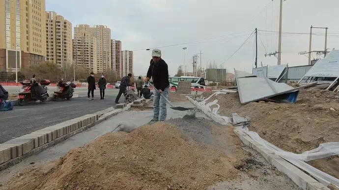 “目前正在进行人行道的铺设工作,我刚来这儿铺了两三天,预计还有十几天就可以完工。”现场的一位施工人员告诉小编。从现场小编看到,除去人行道铺设外,路边石和路灯也在有序修建中。