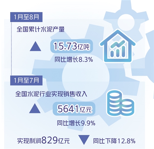 从行业整体情况来看,三季度水泥需求和利润从高位增长逐渐回落至正常水平,降幅逐渐收窄。数据显示,今年1月至8月,全国累计水泥产量15.73亿吨,同比增长8.3%;1月至7月,全国水泥行业实现销售收入5641亿元,同比增长9.9%,实现利润829亿元,同比下降12.8%。