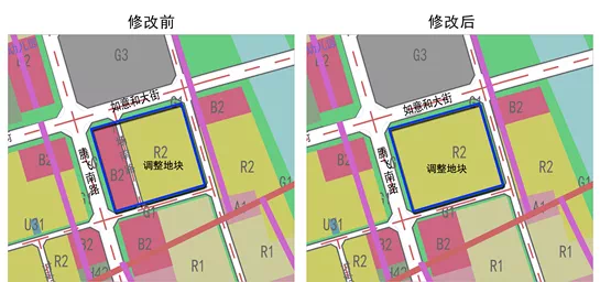 图1中B2+R2地块调整后面积达到83873㎡(约125亩),容积率2.5,绿化率35%,本次土地性质变更公示结束无异议的话,这块地将可能重启开发为纯住宅区。