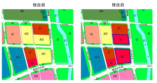 鄂尔多斯东街以南、科尔沁南路以西、苏力德街以北、哈拉沁南路以东的地块,此次拟将南侧的居住用地和商业用地按照现状调整为公园绿地,将阿荣路以西、和平街以南的公园绿地和停车场用地调整为居住用地,并沿街规划相应宽度绿化带;将社会停车场用地分为两个地块置换到区域南侧苏力德街以北的公园绿地中。