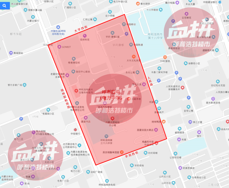 赛罕区:锡林南路以东,大学西街以南,人民路以西,学苑西街以北;