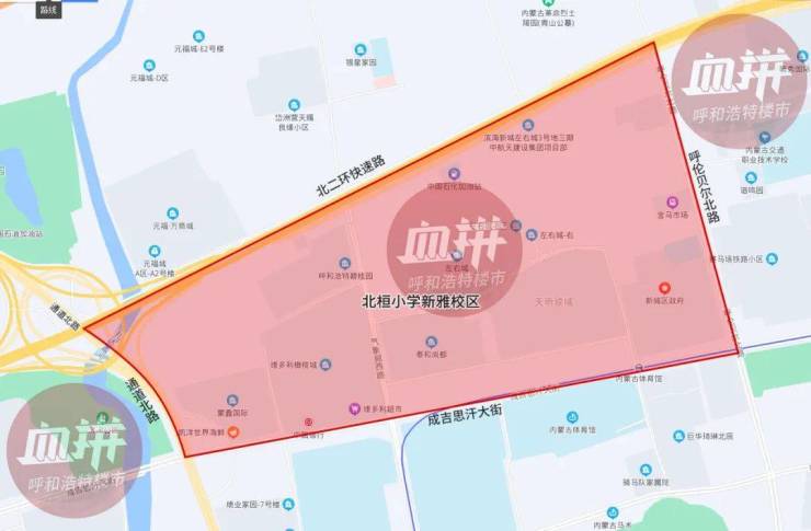 北垣小学新雅校区(2022年新增学校):通道北路以东,北二环以南,呼伦贝尔北路以西,成吉思汗大街以北;