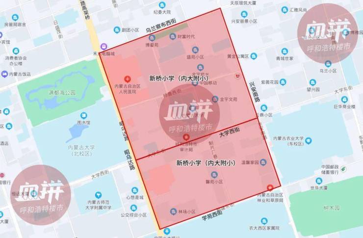 新桥小学(内大附小):昭乌达路以东,乌兰察布西街以南,大学西街以北,兴安南路以西;