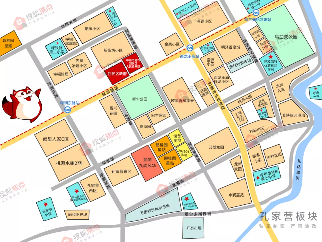 仔细分析,孔家营板块其实是具备发展条件的。虽然近几年发展较慢,但生活配套齐全,不像新开发的板块那样,需要经过多年发展配套才能完善。首先从交通方面来看:2019年,呼市地铁一号线开通,连贯东西,西龙王庙站、呼钢东路站横穿孔家营。2021年,巴彦淖尔快速路主体大致完工,孔家营刚好处于地铁一号线与巴彦淖尔快速路的交汇处,两条城市主干道汇聚,通车后,周边居民通行时间将大大缩短。