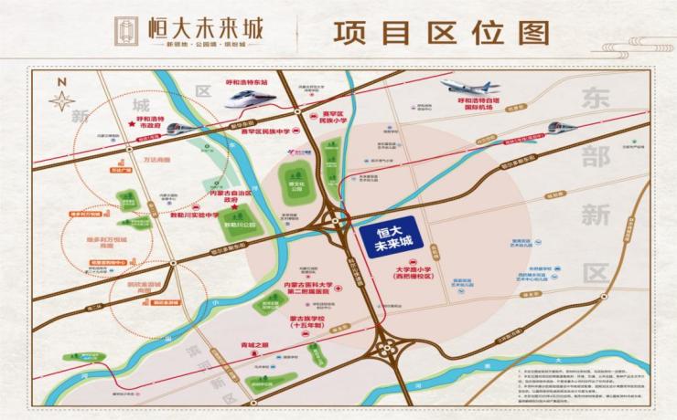 同时,作为城市主拓方向之一,东南区域交通也十分便利。区域拥有白塔机场、火车东站这两大重要交通枢纽,科尔沁快速路、鄂尔多斯东街、呼市绕城高速与内外高速互联,无形中提高了其区域价值。