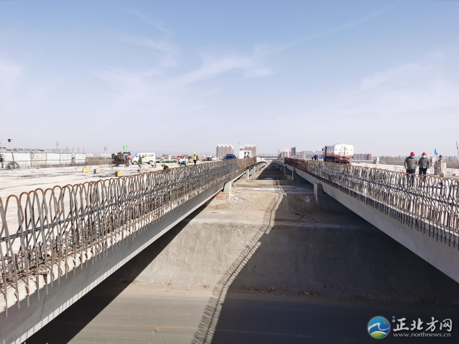 沿着兴安南路一直向南,记者来到兴安南路跨大黑河桥梁建设工程施工现场,施工人员焊接的焊接、清理的清理……各项工程有序推进。据了解,该工程包括跨大黑河桥和两侧衔接道路,路线总长1980米,其中道路长度1285米,桥长695米。目前,桥梁工程主体结构已完成,正在进行桥面附属工程及道路土方清理工程。兴安南路跨大黑河桥梁作为城市南北贯通的主要干道,承担着城市南北向通行的重要交通功能,对改善居民出行环境有着重要意义。